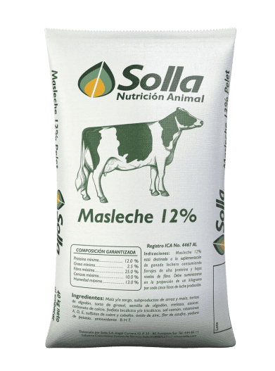 Suministre MASLECHE 12%® a razón de 1 kilo por cada 4 litros de leche producida, teniendo en cuenta la disponibilidad de forraje y la condición corporal de la vaca.
