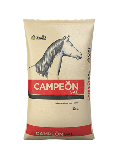 Campeón Sal es una sal mineralizada para la suplementación de equinos de todas las edades y razas, que aporta minerales esenciales con una adecuada relación calcio-fósforo para mejorar su asimilación.